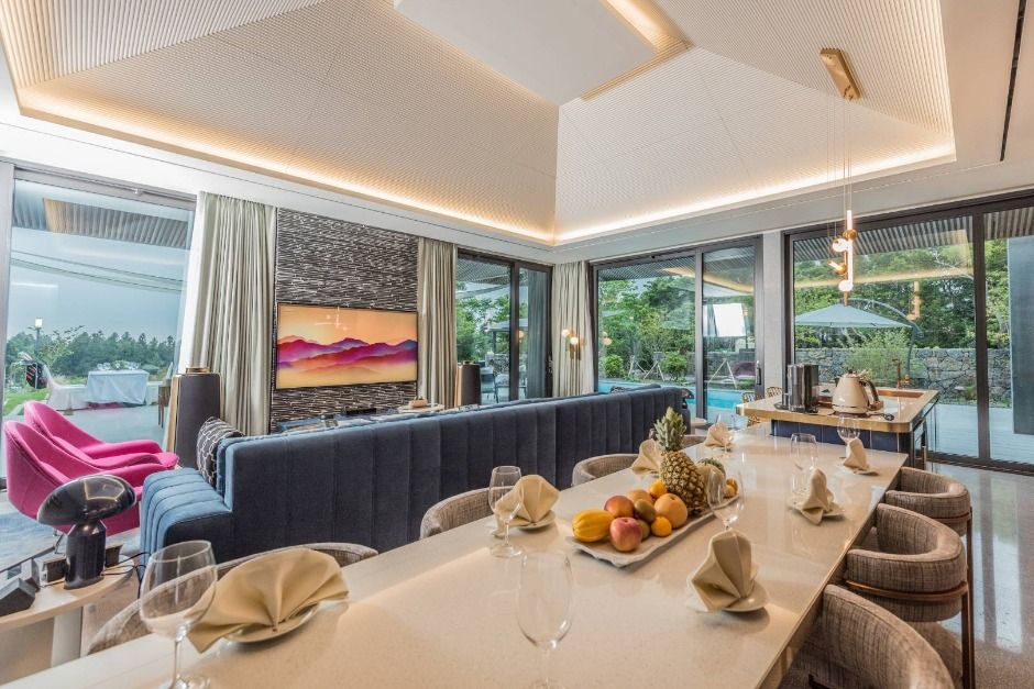 세계적 건축 거장 이타미 준의 예술 작품이자, 제주 아름다운 7대 건축물로 선정된 포도호텔은 26개 객실로 운영된다. 제주의 오름과 초가집을 모티브로 만들어져 하늘에서 내려다보니 한 송이의 포도 같다 하여 포도호텔이라 불리며, 객실은 한실과 양실로 나뉜다. 특히 한실은 한국 전통을 느낄 수 있는 천장의 서까래가 보인다. 또한 모든 창은 한지를 바른 격자무늬 창, 벽과 바닥은 황토로 시공한 후 옛 공법 그대로 한지에 콩기름을 입혀 마감하였다. 또한 양실은 단층인 점을 살려 천장을 높게 올림으로써 쾌적함을 느낄 수 있고, 체리 원목으로 실내를 구성하여 다양한 색감을 느낄 수 있다. 그리고 전 객실에 공급되는 아라고나이트 온천수는 천연 42도 심층 고온천수로 자연 속 휴식과 쉼을 제공한다. 포도호텔에서 운영하고 있는 건축예술가이드는 오직 투숙객들만을 위한 프로그램으로 건축가 이타미 준의 설계 철학을 감상하고 싶다면 추천하는 프로그램이다.